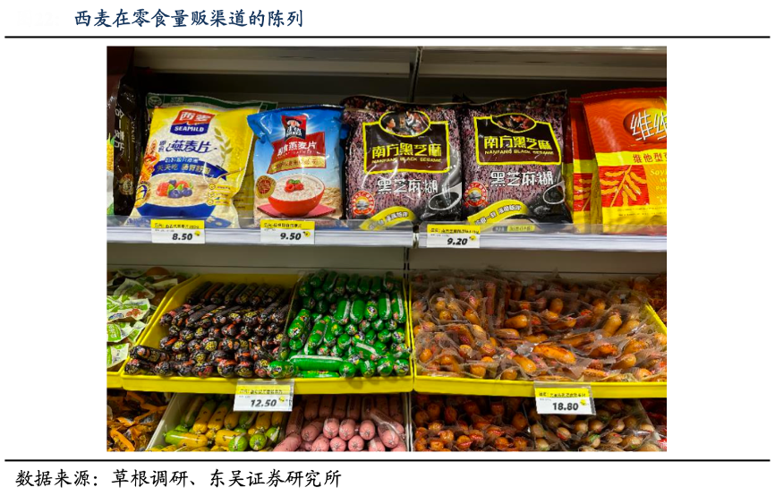 经典案例:根据草根调研、东吴证券研究所等综合资讯表明,西麦食品积极布局零食量贩渠道,与国内各量贩品牌均展开合作,2023年公司在线下零食渠道同比增长超过180%,零食量贩渠道的快速发展驱动公司线下业务新增量。