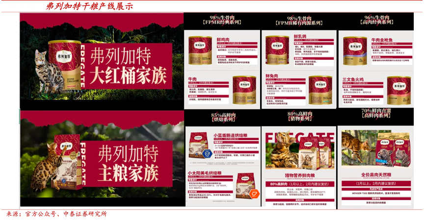 经典案例:根据官方公众号、中泰证券研究所等综合资讯表明,弗列加特秉承开发少量、创新、精致、差异化的产品模式塑造品牌的高端形象。弗列加特每次推出的新产品、新口味都具有创新性和针对性。如近期新推出的小蓝盾系列旨在改善猫咪肠道健康,缓解软便和口臭的问题。