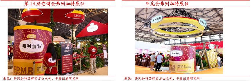 经典案例:根据弗列加特品牌官方公众号、中泰证券研究所等综合资讯表明,乖宝宠物公司在“它博会”“亚宠会”等知名宠物展览中为弗列加特品牌建立独立展台。为了强化产品的专业度,弗列加特在展会上安排研发人员详细为用户介绍产品营养成分、制作工艺以及相关技术专利,不断强化自身高端猫粮的品牌定位。