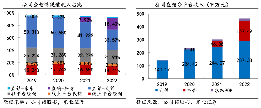 经典案例:根据公司招股书、东北证券等综合资讯表明,润本目前以天猫、京东、拼多多和抖音等电商平台销售为主,其中最早布局天猫平台,通过长期渠道建设,逐渐掌握成熟的线上运作模式,并积累起庞大的线上客户资源,市场份额快速提升,润本品牌 2020-2022 年连续三年在天猫平台的蚊香液销售额排名第一,市占率分别为 16.42%、18.32%、19.99%。