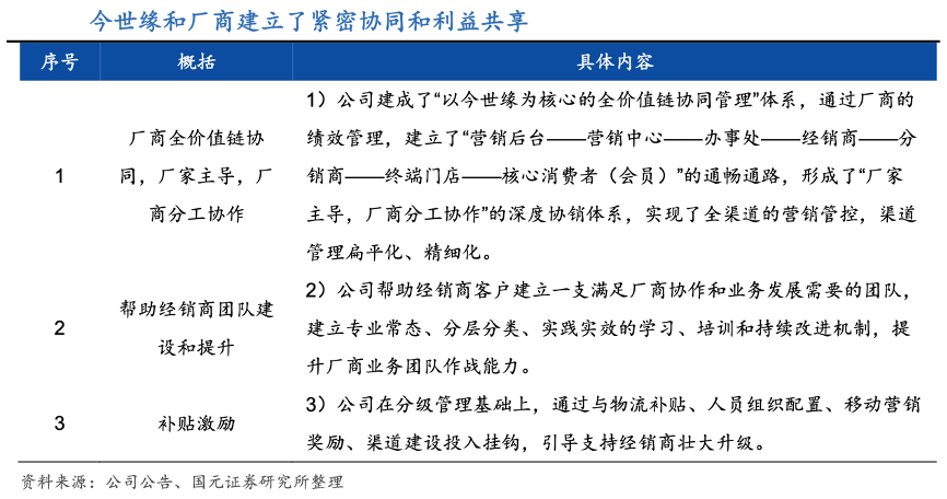经典案例:根据公司公告、国元证券研究所等综合资讯表明,今世缘公司以经销渠道为主,积极向“经销+直销+线上销售”的模式转变。公司销售模式以经销为主,2022年经销渠道收入占主营业务收入的 97.93%。目前公司对重点区 域、重点团购单位等实行直销,在江苏省内淮安、南京市区、苏州市区和徐州市区,省外上海、北京等地有部分直销。