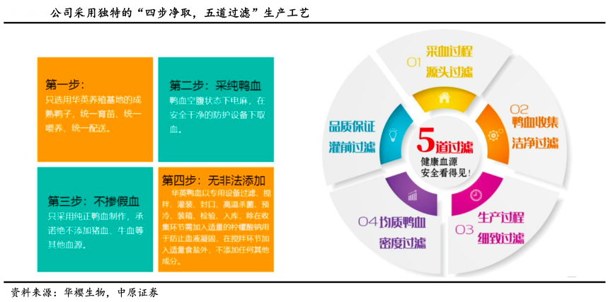经典案例:根据华樱生物、中原证券等综合资讯表明,华英农业公司是国内首家高端鸭血制品开创者,处于行业领先地位。2001年公司将血制品列为华英 食品事业部五大业务单元之一,致力于打造鸭血制品第一品牌。华樱生物拥有国内一流的技术研发团队,将传统工艺与现代工艺结合,采用“四步净取,五道过滤”等专业技术,使鸭血产品具备配方独特、品质稳定、口感纯正、营养价值丰富的特点。