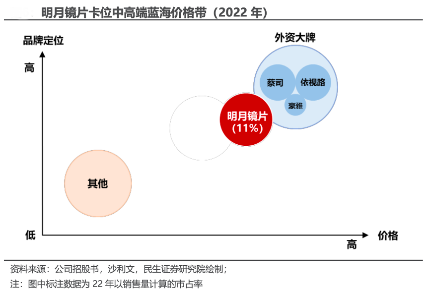 经典案例:根据公司官网、民生证券研究院等综合资讯表明,凭借着对行业的深刻洞察与敏锐前瞻性,明月镜片在 2018 年起便主动退出部分低折射率低端产品业务,转型聚焦中高端镜片市场,重点研发并推广中高折射率、功能性镜片等具备差异化竞争优势的镜片产品。