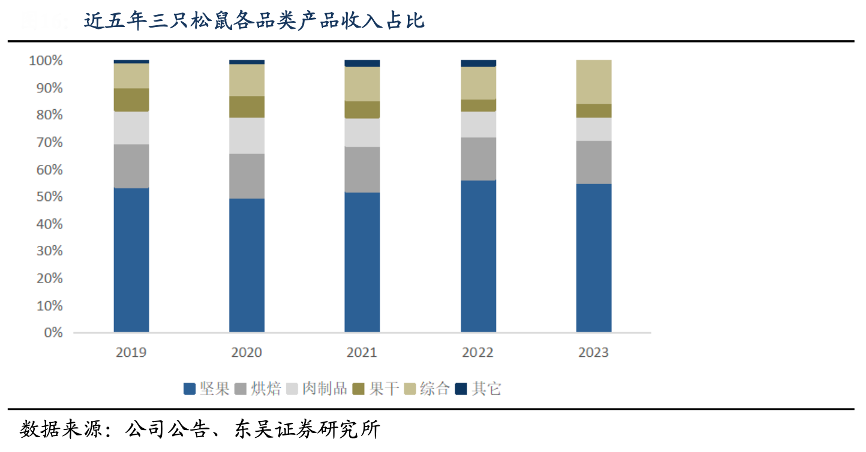 经典案例:根据公司公告、东吴证券研究所等综合资讯表明,三只松鼠公司坚持以坚果为核心,三只松鼠每日坚果、夏威 夷果、开心果等坚果产品长期稳居天猫等众多品类榜单前列。同时,其也在不断进行品类拓展,近年来新增甄养椰子汁、鲜蛋糕、手撕风干烤脖、鳕鱼肠、红豆蛋黄酥 等系列新品,产品矩阵不断丰富。