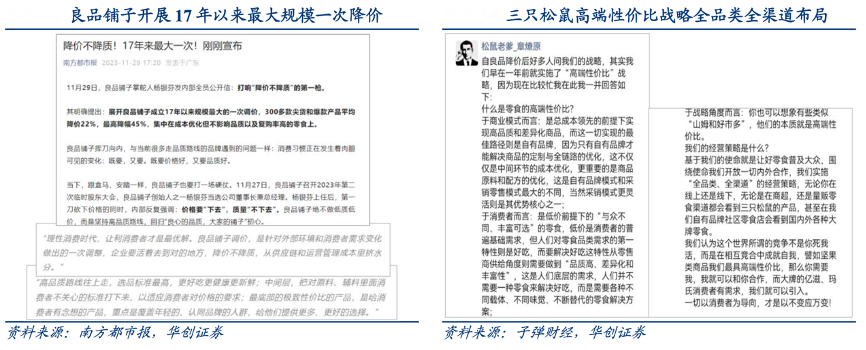 经典案例:根据南方都市报、子弹财经、华创证券等综合资讯表明,零食量贩催生的新一轮供应链革命,从下游延伸至上游,过去零食电商时代积累品牌高度,当前从白牌到自建产能优化供应链,放大制造效率和性价比优势。以良品降价为标志,松鼠布局高端性价比、百草味强化“品价比”,零食全渠道开始问供应链拿效率,当前也在积极的折扣化摸索中。