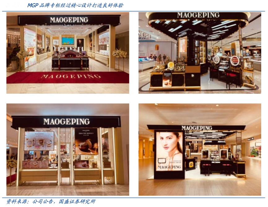 经典案例:根据公司公告、国盛证券研究所等综合资讯表明,MGP品牌的专柜基本位于中高端商场,专柜的装潢经过精心设计,配备的专业员工可为消费者提供个性化咨询及专业试妆服务,打造沉浸式及个性化的购物体验。
