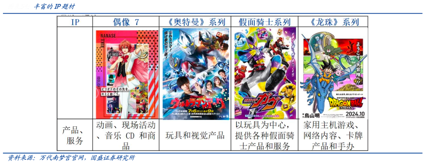 经典案例:根据万代南梦宫官网、国盛证券研究所等综合资讯表明,万代以高频新品投放与数据驱动开发机制显著 强化 IP 落地能力,其每年推出超过 1,200 款 GASHAPON( 蛋))产品,大部分商品在 1 至 2 个月内即完成上下架,实现极短生命周期内的高频更替。