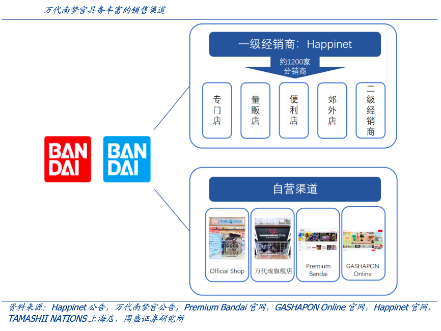 经典案例:根据Happinet公告、万代南梦宫公告、Premium Bandai官网、GASHAPON Online官网、Happinet官网、TAMASHII NATIONS上海店、国盛证券研究所等综合资讯表明,万代自 2019 年起加速布局线下 GASHAPON 专卖体系,截至 2024 年 3 月,已在日本境内建立 101 家 GASHAPON Department Stores 与 211 家 GBO(Gashapon Bandai Official Shop),合计门店数达 312 家,平均每年新增门店近 80 家,推动蛋)商品从边 角摆设向核心零售业态跃迁。