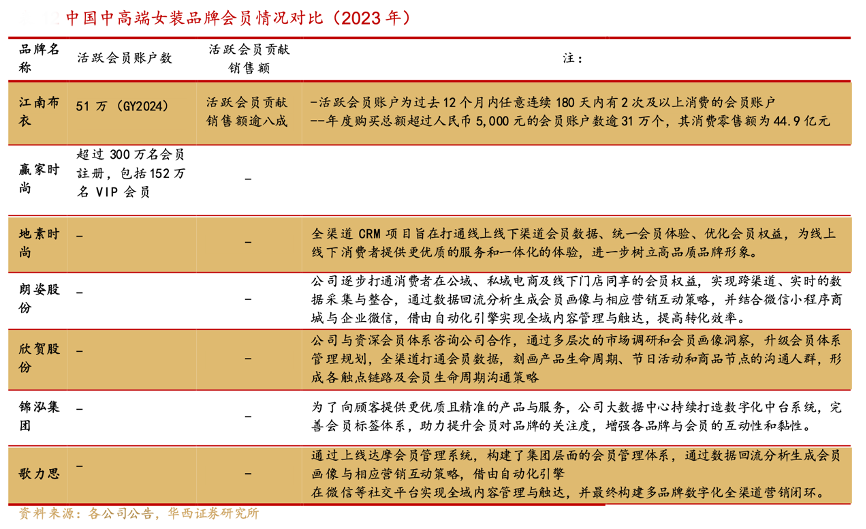 经典案例:根据各公司公告、华西证券研究所等综合资讯表明,江南布衣公司坚持以数据为驱动、技术为载体、粉丝经济为核心,持续不断地为粉丝创造及提供增值服务的场景和触点建设,用户粘性强,打造一套“江南布衣粉丝经济”体系。FY2019-2024H1,公司会员账 户数由逾 360 万增长到逾 740 万,FY2024 零售额贡献占比由七成增长至逾八成。