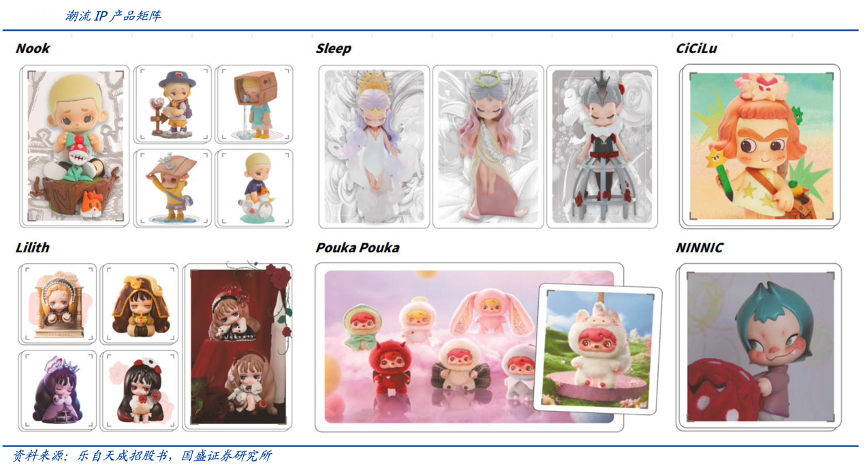 经典案例:根据乐自天成招股书、国盛证券研究所等综合资讯表明,乐自天成的潮流IP主要面向年轻一代的流行文化爱好者;除自主开发的Nook、Sleep、Lilith 等 IP 外,公司还通过收购获得了外部艺术家开发的 CiCilu、NINNIC 和 Pouka Pouka 等潮流 IP 的版权。
