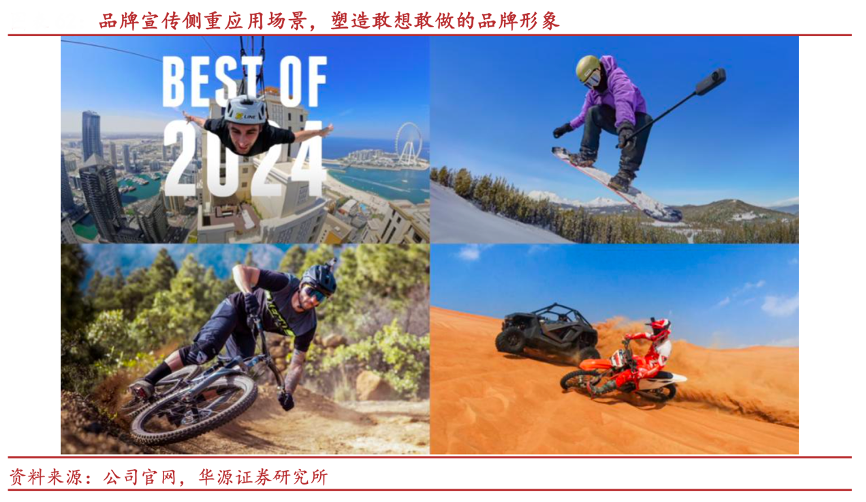 经典案例:根据公司官网、华源证券研究所等综合资讯表明,影石公司品牌 Slogan 为“Think Bold(始于敢想)”,坚持直面挑战、大胆尝试的品牌文化。公司并不过分强调自身产品参数,而是主要宣传产品的使用场景与使用体验,以唤醒用户内心深处对冒险、勇敢生活的渴望,以及对创作、分享的热情。