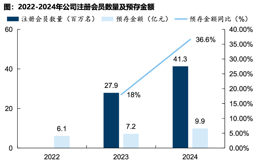 经典案例:根据公司招股说明书、公司公告,锅圈食汇微信公众号、网易新闻、大众新闻、国海证券研究所等综合资讯表明,2024年下半年,锅圈公司针对会员体系进行全面升级,通过对会员等级分级体系 的调整,同时加强会员权益的回馈,进一步带动会员数量增长和黏性提升。据公司公告,截至2024年末,公司注册会员数量达到约41.3百万名/同比+48.2%,预付卡预存金额达9.9亿元/同比+36.6%。