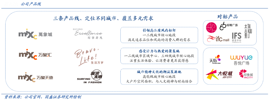 经典案例:根据公司官网、国盛证券研究所等综合资讯表明,华润万象生活公司运营的购物中心主要包括“万象城”、“万象汇”和“万象天地”三条产品线。其中的万象汇定位于一二线城市的区域级购物中心和三四线城市的城市级购物中心,面向年轻人和家庭。