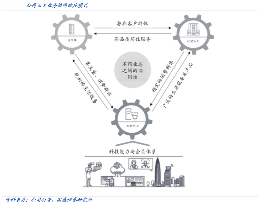 经典案例:根据公司公众号、国盛证券研究所等综合资讯表明,华润万象生活公司通过发起联合营销活动,在线上产品(面向购物中心 的“一点万象”App,面向住宅用户的“悦家”与面向写字楼用户的“Officeasy”)上 应用大数据分析,以及为用户提供会员及奖励计划,进一步加强业态间的协同效应。